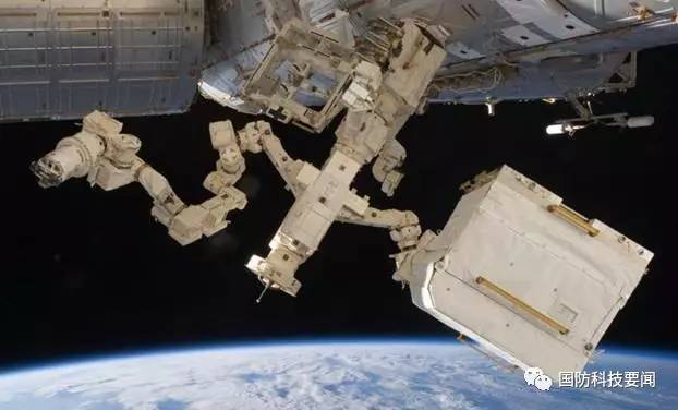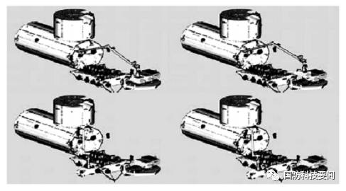 JEMRMS是用于空间操作的机器人系统,NASDA负责研制。该机器人由主臂和小臂SFA串联组成,主臂长约10米,主要由6个关节和2个臂杆组成;小臂长约2米,主要由6个关节、2根臂杆以及一个末端效应器组成。航天员执行任务时可以借助于这两个臂杆进行更多的操作,下图为JEMRMS搬运有效载荷的过程。