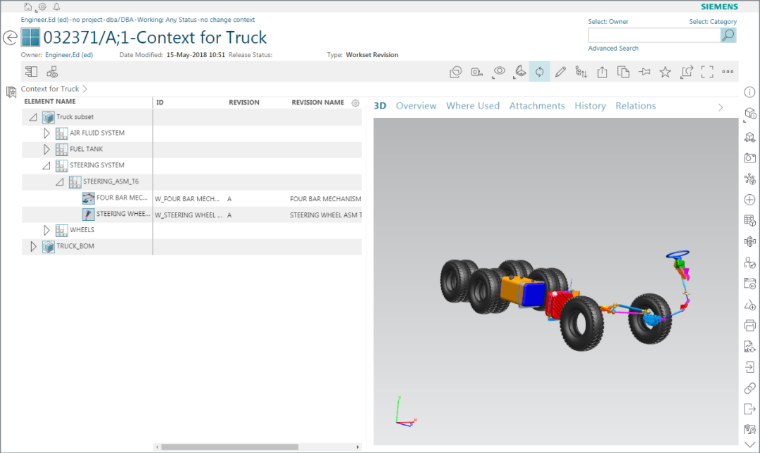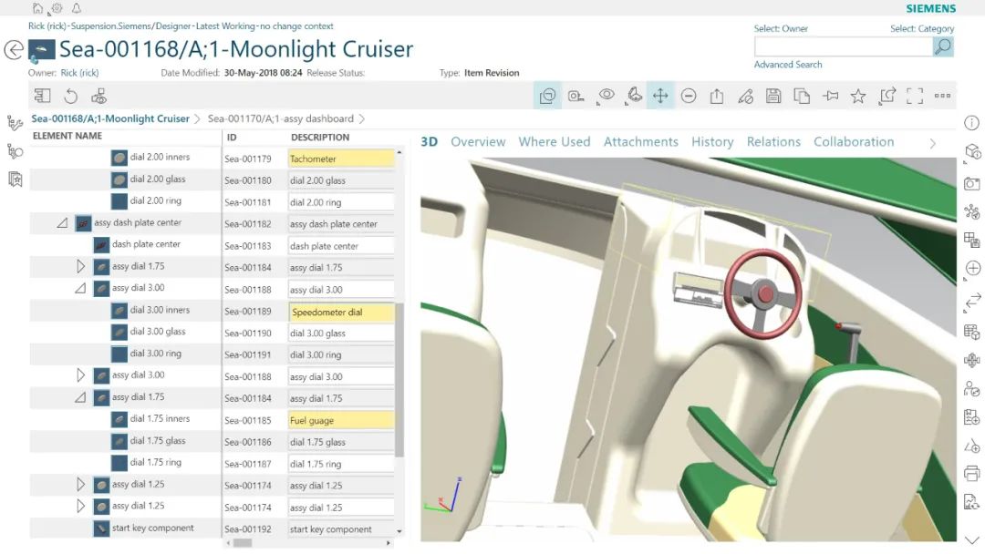 Teamcenter BOM管理通过增强的导航树结构来继续提高可用性。新的智能发现功能使团队和个人可以找到所需信息,并以对他们最有意义的方式来使用它们。用户可以快速搜索和过滤大量数据,以及查找完成特定任务所需的内容。BOM和其他信息可以通过易于理解的方式查看。人们可以灵活地在其产品的上下文中工作-通过动态定义上下文或访问自己的基于角色的个人工作区,从而在针对您的域的预定义BOM表视图中工作。