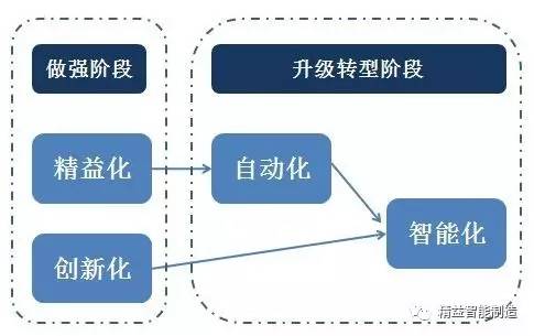 基于以上制造业存在的实际问题,如果不能很好的解决,制造业想成功升级转型恐怕只能是空中楼阁了。那么怎么样才能解决这些问题呢?基于过去给上百家企业的咨询、辅导和培训服务经验,针对制造业实际需求,欧阳生老师提出了“精益智能制造”这个系统的解决方案,精益智能制造认为企业成功升级转型需要经历2个阶段,4个步骤,如下图所示: