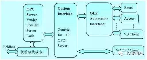 OPC全称是Object Linking and Embedding(OLE) for Process Control,它的出现为基于Windows的应用程序和现场过程控制应用建立了桥梁。在过去,为了存取现场设备的数据信息,每一个应用软件开发商都需要编写专用的接口函数。由于现场设备的种类繁多,且产品的不断升级,往往给用户和软件开发商带来了巨大的工作负担。通常这样也不能满足工作的实际需要,系统集成商和开发商急切需要一种具有高效性、可靠性、开放性、可互操作性的即插即用的设备驱动程序。在这种情况下,OPC标准应运而生。OPC标准以微软公司的OLE技术为基础,它的制定是通过提供一套标准的OLE/COM接口完成的,在OPC技术中使用的是OLE 2技术,OLE标准允许多台微机之间交换文档、图形等对象。