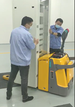 保护屏柜生产线,所有屏柜工序均使用智能运转机器人,实现了物料配送由人工搬运到自动配送的转变,屏柜年产能提升50%。