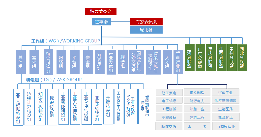 2016年中国信通院在工业和信息化部的指导下,联合产业各界共同成立工业互联网产业联盟(简称AII),搭建起协同发展平台,开展工业互联网技术研究、测试床建设、应用实践、产融结合、国际合作等各项工作,并在这个平台上不断创新、不断试验,不断发展壮大,目前联盟成员已超1500家,形成“13+12+X”体系架构,在全国成立6个分联盟,逐步形成多方联动的产业生态格局。
