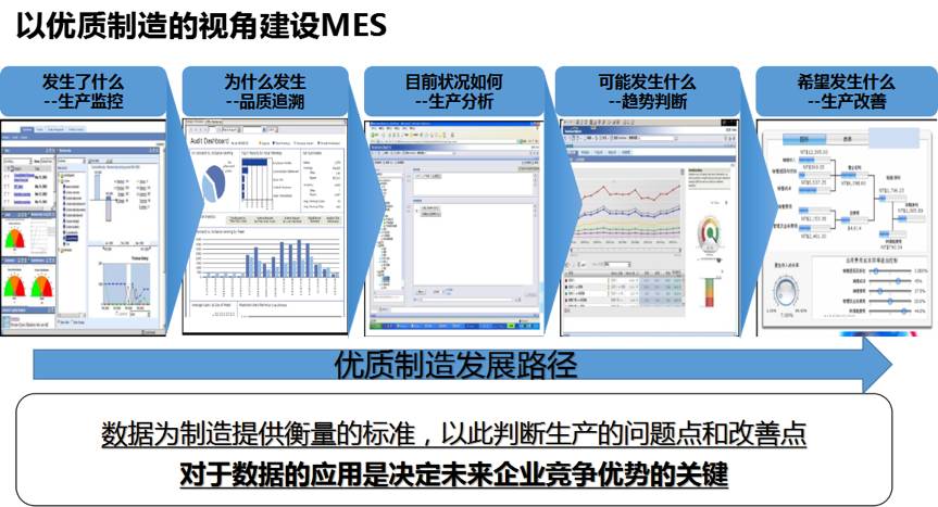 因此实现优质制造的基础是实施MES系统。通过实施MES系统来解决数据如何采集和标准化、数据如何筛选,甄别和统计,形成有效的信息、以及如何对于信息进行分析和判断,并以此产生价值。