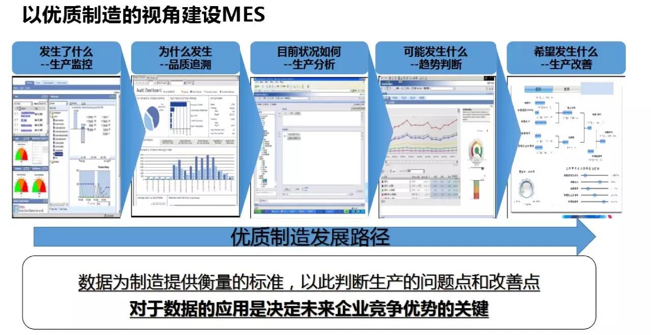 因此实现优质制造的基础是实施MES系统。通过实施MES系统来解决数据如何采集和标准化、数据如何筛选,甄别和统计,形成有效的信息、以及如何对于信息进行分析和判断,并以此产生价值。