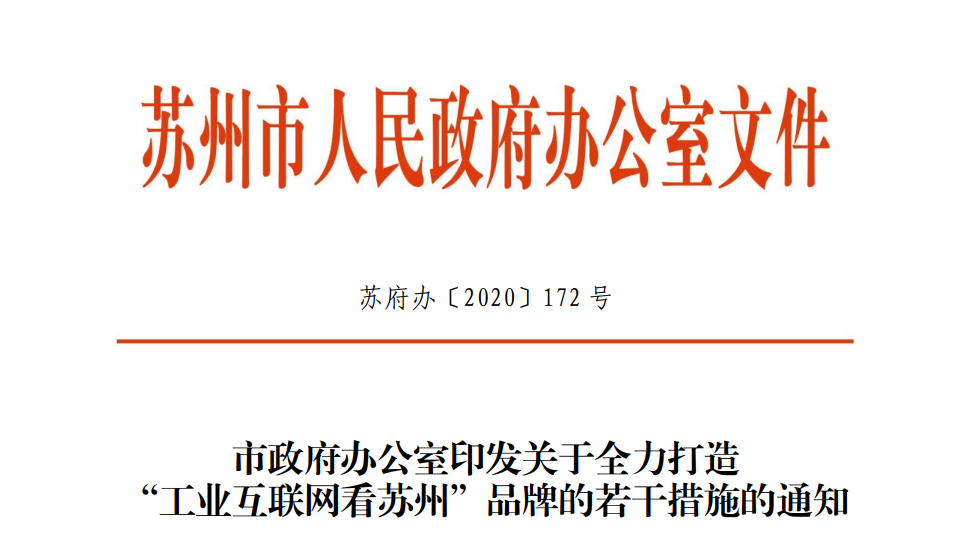 为加快推进工业互联网创新发展,全力打响“工业互联网看苏州”品牌,日前,苏州市人民政府办公室印发了《关于全力打造“工业互联网看苏州”品牌的若干措施》。