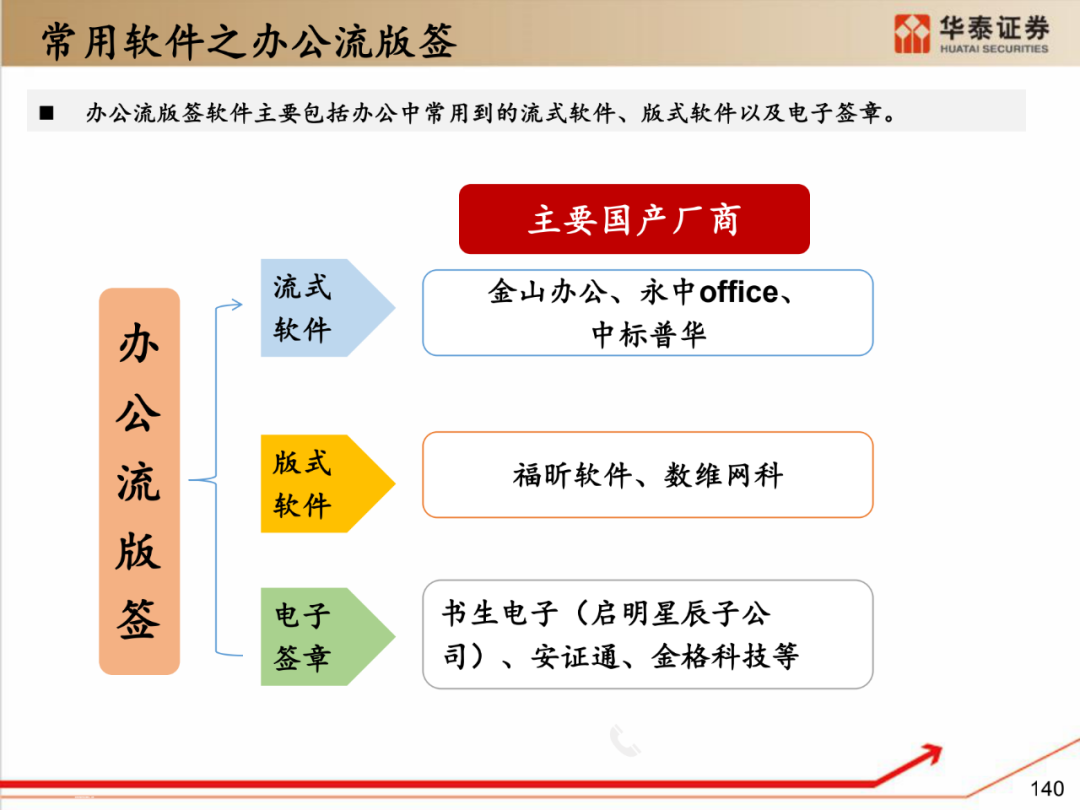 主要关注的科技公司,如华为、金山、福昕、诚迈、中国软件、中国长城、曙光、中孚、北信源、南洋、启明星辰、太极、东软、神州、东方通、宝兰德、普元、超图和用友等。
