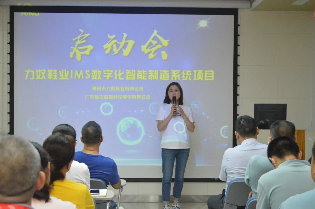 7月8日上午,力奴鞋业召开IMS数字化智能制造系统项目启动会,董事长林金阳、总经理林金星、IMS项目实施团队盘古公司副总经理周峰、项目经理左慧平,及双方项目组成员参加了本次会议。会议由力奴鞋业IMS项目经理许蔚静主持。