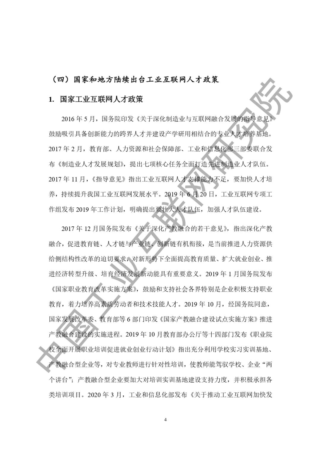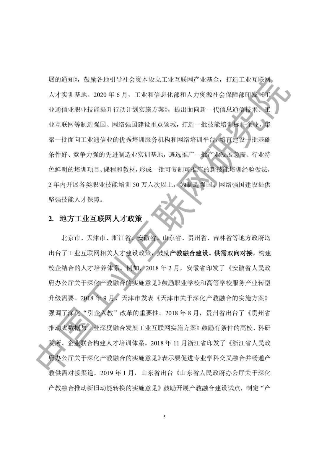 二、 工业互联网人才需求侧分析(一)不同类型工业互联网企业用人需求与其主体业务直接相关(二)工业互联网企业的岗位多元,需求不统一(三)工业互联网相关职业欠缺,新职业发布需跟紧行业需求(四)工业互联网带动就业效果十分显著三、 工业互联网人才培养现状(一)普通高等学校缺乏工业互联网专业(二)继续教育积极探索工业互联网产业人才培训,但系统性不足(三)亟需编制用于工业互联网教育教学的专门教材(四)工业互联网人才培养难点分析四、 关于壮大我国工业互联网人才队伍的建议(一)加强工业互联网人才需求预测,支撑人才政策的科学编制与精准实施(二)建立工业互联网人才评价体系,指导人才培养改革与能力认证(三)建设工业互联网人才培养生态,共建人才培养体系五、 附录:国内工业互联网人才政策汇编(一) 国家工业互联网人才相关政策