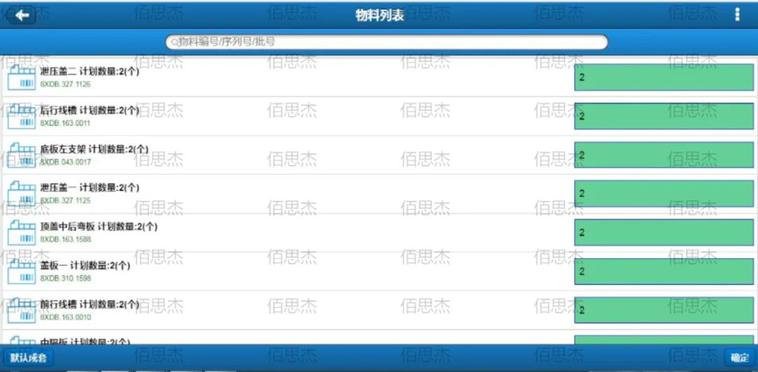 另外,为了提高作业汇报效率,佰思杰MES系统还提供了“分拣成套”的功能。系统可以根据钣金后续的装配工序所需要的钣金零件创建成套分拣任务列表,操作工根据成套列表进行钣金件的配套清点和确认,这样一方面既可以保证装配工序自制件的齐套性,另一方面也提高了作业效率,系统可根据分拣任务完成情况汇报自动对这些钣金零件进行批量完工汇报。