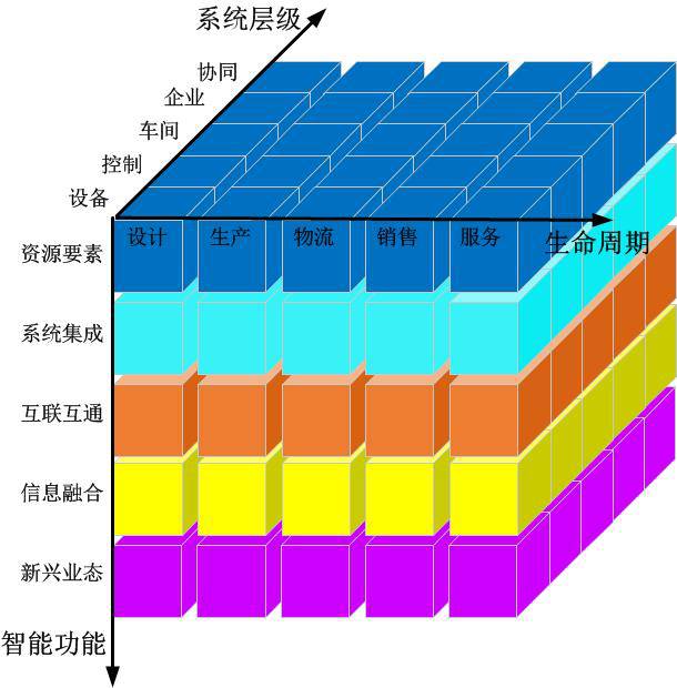 包含工厂内不同层级的硬件设备:从最小的嵌入设备和基础元器件开始,到感知设备、制造设备、制造单元和生产线,相互间均实现互联互通。以此为基础,构建了一个“可测可控、可产可管”的纵向集成环境。