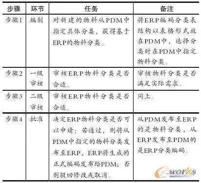 既然企业物料编码源头放在ERP建立并维护比较合适,那么PDM获取编码必须通过集成实现。从PDM通过集成获取ERP分类编码传统方案如表1(此处假设物料编码审批环节为4步)所示。