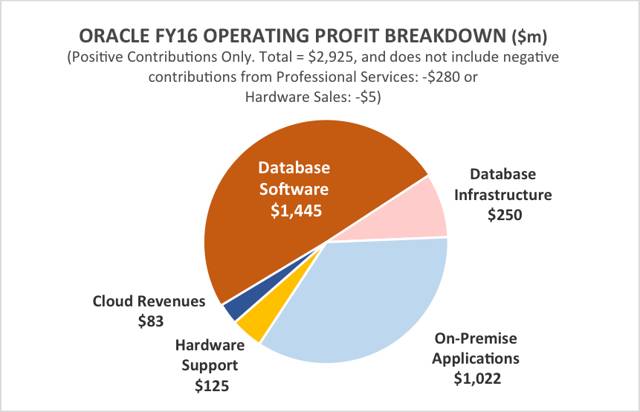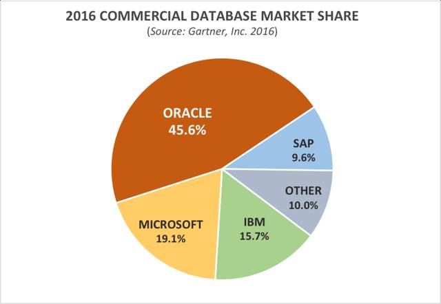 来自数据库软件的收入占Oracle 2016财年总收入的约36%,占其营业利润的约55%。