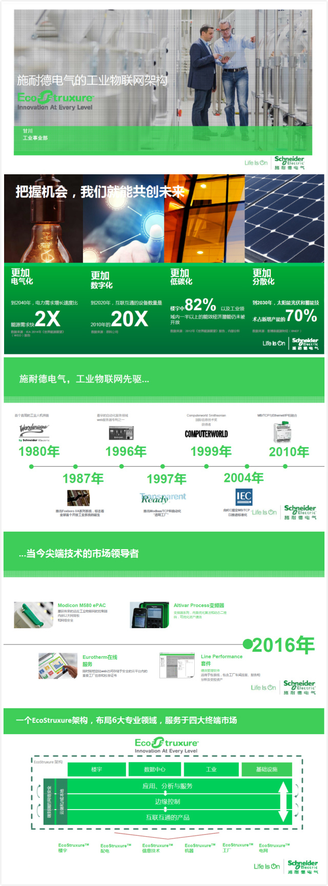 在工业互联网产业联盟(AII)第四次工作组全会国际合作与对外交流组的工作会议上,施耐德战略及业务发展部、工业事业部战略经理甘川分享了施耐德电气的工业互联网架构(EcoStruxure)。