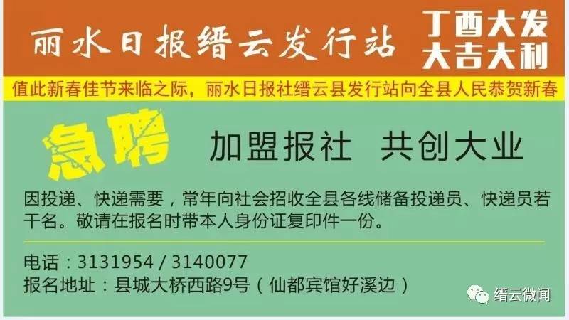 缙云微闻为解决各企业和商家春节前后用工需要,同时为求职者提供方便的招聘信息,特推出2017年新春招聘栏目,我们的目标只为单位解决招聘需求,对接好才企双方。
