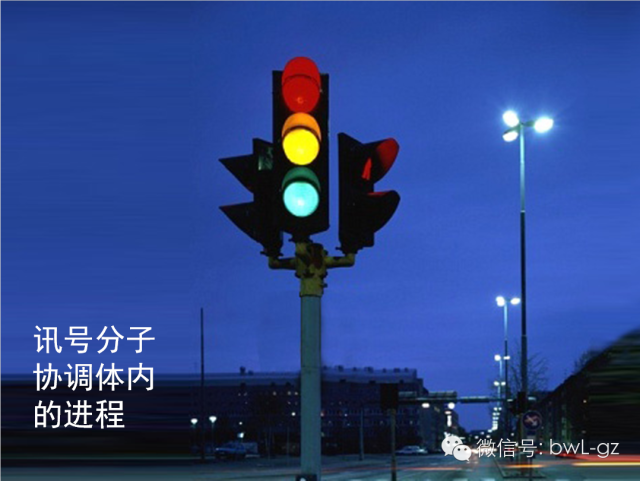 讯号分子帮助协调,使所有的进程可以在同一时间内顺畅运行,以达致最佳的状态,就像在一个非常繁忙的路口指示交通顺畅的交通灯。