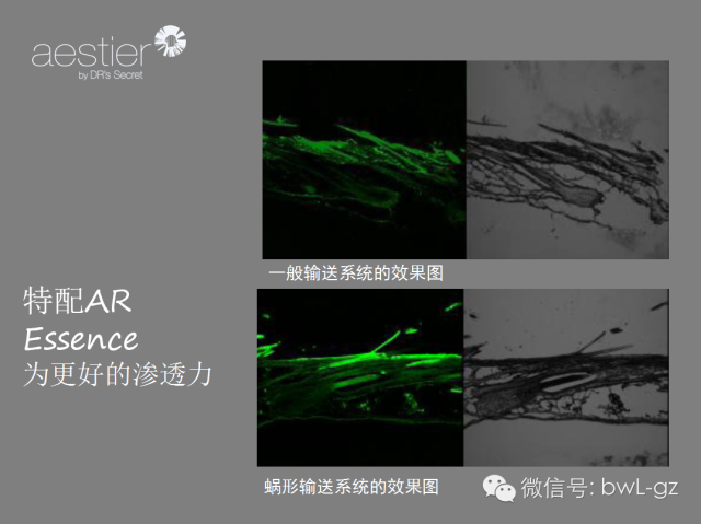 蜗形结构也形成了与皮肤结构相似的输送分子,从而达至更容易、更有效的渗透,以增加效果。