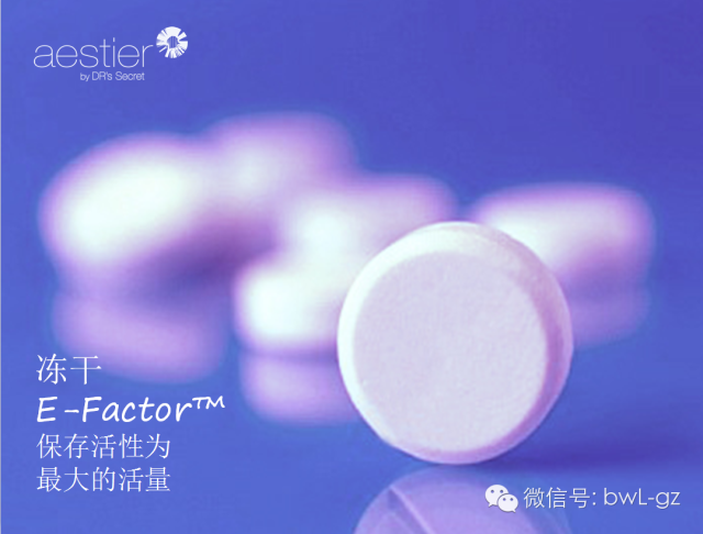 同样的,专利的冻干技巧以锭片和泡罩包装的方式,让锭片在溶解成液状前保存E-Factor的十分活量,确保每次使用时都是新鲜与准确的剂量,以达至最大的效力。