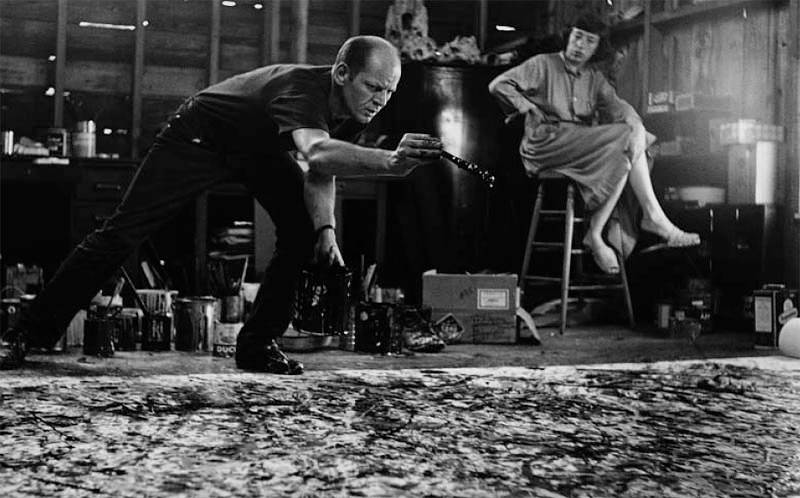 正在作画的抽象表现主义画家波洛克(1912-1956):他以其独创的“滴画”著称
