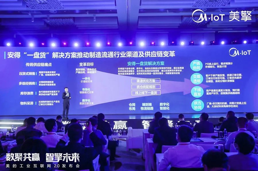 从家电制造商到科技集团,美的集团在产业升级方面是先行者,2012年开始布局数字化转型战略进行深度业务变革,锻造了自主兼备“制造业知识、软件、硬件”三位一体的工业互联网平台,深化“互联网+先进制造业”,并带动40多个细分行业开展产业集群工业互联数字化转型。在推动制造业升级和新兴产业发展历程中,不断提高科技创新支撑能力。美的集团美云智数总裁金江正式对外发布美的工业互联网2.0。