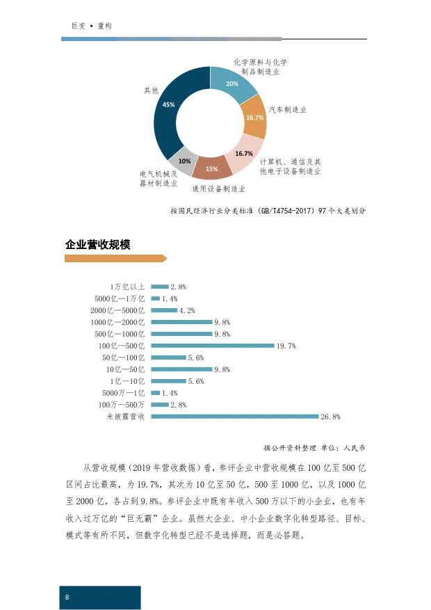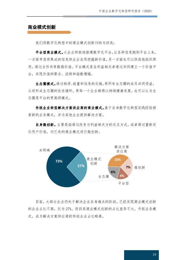 《中国企业数字化转型研究报告(2020)》由清华大学全球产业研究院李东红研究团队主编。本报告通过线上+实地相结合的方式,历时3个月,深入调研了包括高端装备制造、汽车、能源、教育、房地产等十余个行业、五十余家企业的数字化转型实践,涉及国有(国有独资和国有控股)、民营和中外合资等多种企业类型。