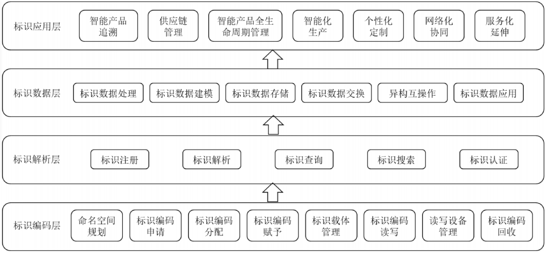 工业互联网标识解析系统的整体架构采用分层、分级模式构建,面向各行业、各类工业企业提供标识解析公共服务。系统主要元素包括根节点、国家顶级节点、二级节点、企业节点、公共递归节点等。工业互联网通过标识编码识别互联的万物,并通过联网对象的协作交互实现全要素、全产业链、全价值链的互通,有效提高生产效率。随着工业互联网推进不断深入,采用公有标识对各类资源进行标准化编码成为实现信息共享,推进工业智能化的基础。能够唯一识别不同联网对象的标识编码技术是实现工业互联网应用服务的前提。