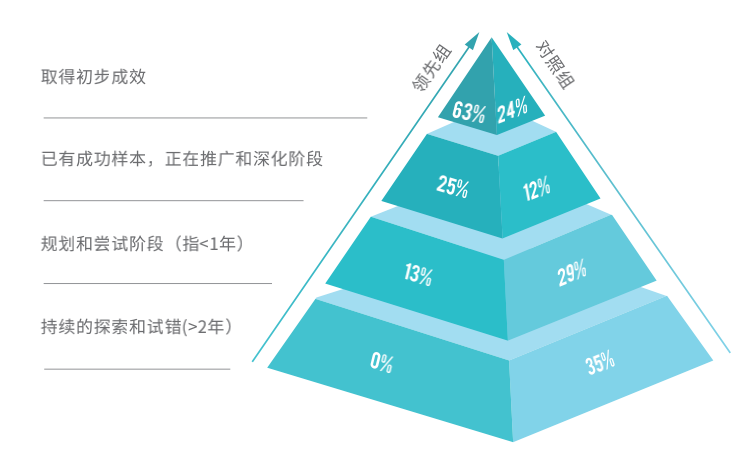 虽然数字化转型在企业的广泛实施已超过5年,但能够取得成功样本、可以在企业内推广的企业不足两成。当前的数字化转型仍处于初级阶段。成功转型与未成功转型之间的差距究竟在哪里?