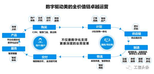 美的智数全价值链运营示意图工业制造类企业在往互联网转型过程中,