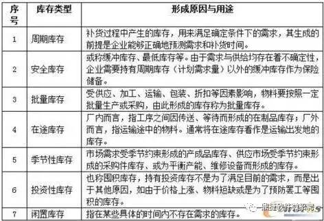 为什么会出现库存?其次,我们要弄清楚为什么会出现库存。库存是一项代价很高的投资,弄清楚为什么而在企业保持库存,以便对之进行有效的管理是很有必要的。为了更为清楚地表述,我们将库存由于形成的原因与用途不同划分为七种类型,并通过表1进行逐一地介绍。