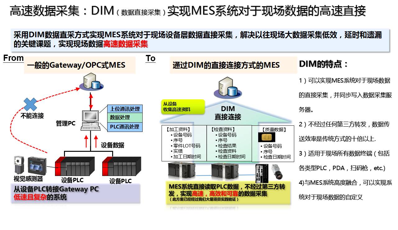 未来的制造将更多依赖于生产的大数据管理,而生产数据具有连续性,离散性……等特点,因此对于数据的采集和挖掘是数字化建设的关键,目前国内企业由于之前缺乏信息化的规划,现场设备控制器的品牌和种类几乎成了“万国博览会”,通讯协议从最简单的RS232接口到各类型的以太网协议,包罗万象,无法统一,而目前对于新工厂或者新产线规划,虽然对于信息化有所重视,但依然缺乏清晰的标准导向,导致后期实施难度并没有降低。但如果数据不能可靠并且高效的采集上来,所有的设想和规划都无法落实和推动,因此数据采集是MES实施最关键的工作。
