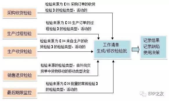 质量检验由质量计划提供的信息支持而为质量控制提供重要的数据,为包含指定物料的单独检验批执行质量检验。检验处理的步骤:创建和处理检验批->取样并检验货物->记录检验结果->完成检验,并做出最终使用决策的判定。