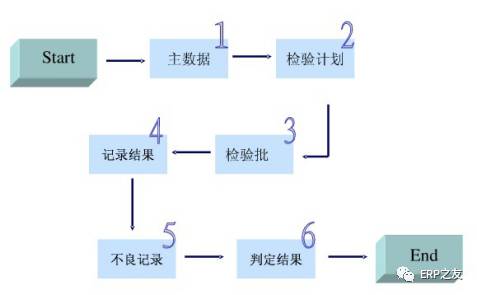 每一次启动质量管理,从QM主数据的维护、检验计划的定义、到检验批的创建修改、结果缺陷的记录、判定结果使用决策,呈现出一个完整、严谨的检验过程,如下图所示: