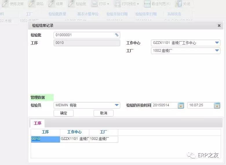 双击工序TAB页中的某条明细即选择该工序,点击【确定】进入记录结果界面: