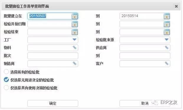 不同的业务阶段,维护检验来源不同的检验类型,生成相对应的检验批。