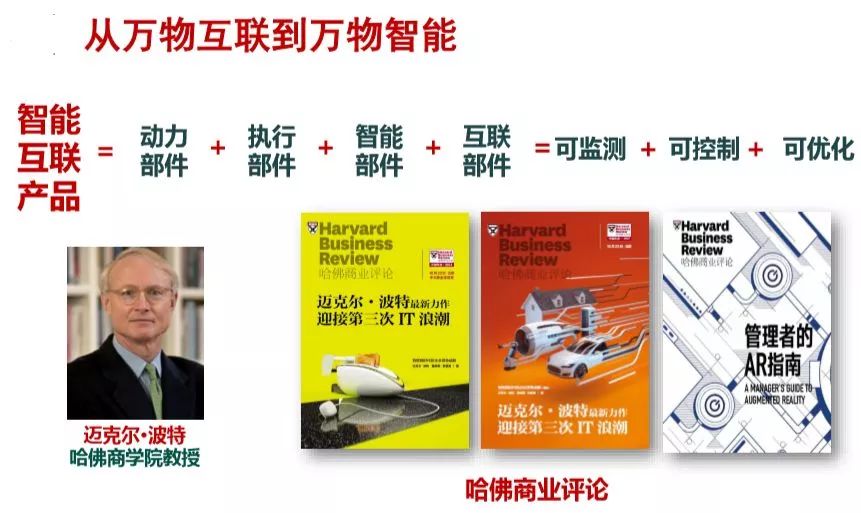 没有网络的世界是一个机械系统。随着传感器、互联网、物联网的出现,IoT时代正在到来,所有的产品最终都将成为一个网络终端。正如波特所说,未来,所有的产品功能将由四个基本模块构成:动力部件、执行部件、智能部件、互联部件,未来的智能产品可以监测、可以控制、可以优化,产品的功能灵活性、易扩展性、安全性、可管理性都得到提高。