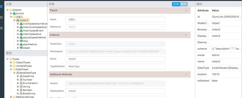 平台提供快速建模工具,工业云的模型通过可视化的建模工具进行设置,基本功能包括:模型库管理、模型编辑、对象编辑、订阅管理等功能。如下图: