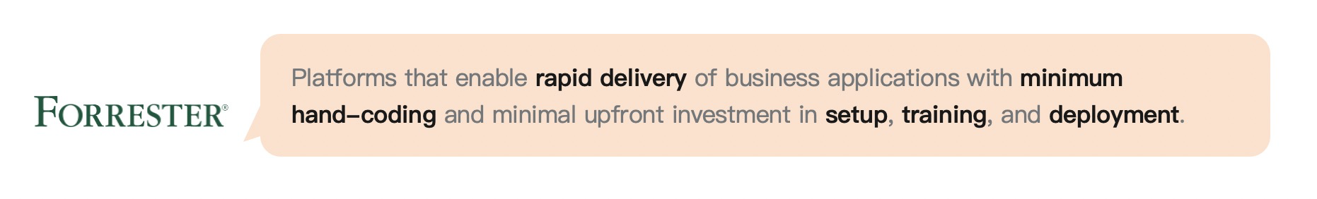 顺着Wiki的描述还能发现,原来“Low-Code”一词早在2014年就由Forrester提出了,它对低代码开发平台的始祖级定义是这样的: