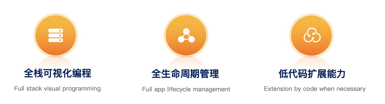 全栈可视化编程:可视化包含两层含义,一个是编辑时支持的点选、拖拽和配置操作,另一个是编辑完成后所及即所得(WYSIWYG)的预览效果。传统代码IDE也支持部分可视化能力(如早年Visual Studio的MFC/WPF),但低代码更强调的是全栈、端到端的可视化编程,覆盖一个完整应用开发所涉及的各个技术层面(界面/数据/逻辑)。