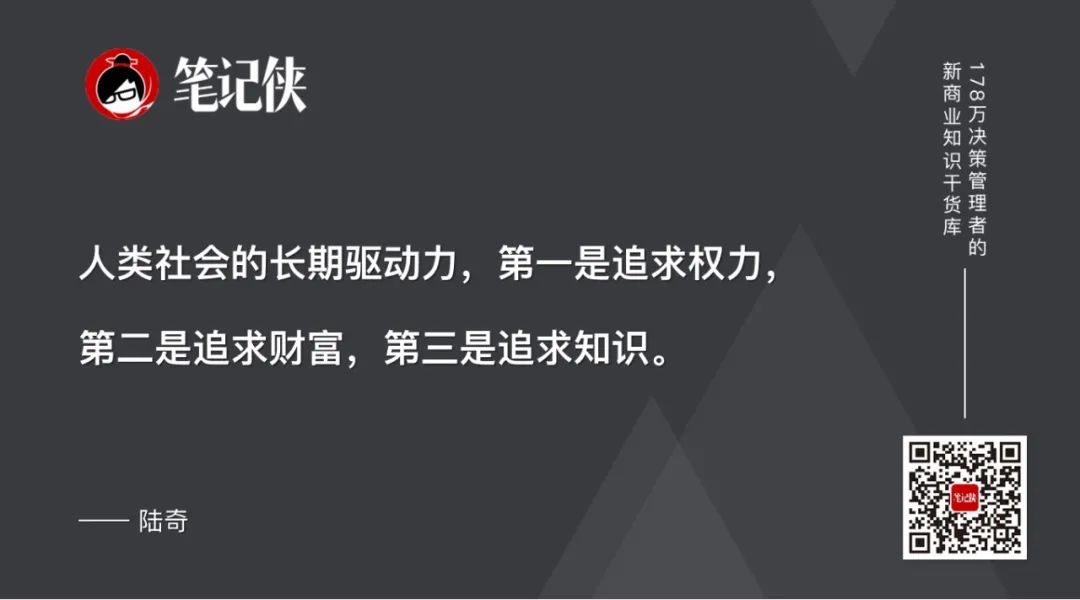 人类社会就是一个超级复杂的系统,而人类社会的长期驱动力,第一是追求权力,第二是追求财富,第三是追求知识。