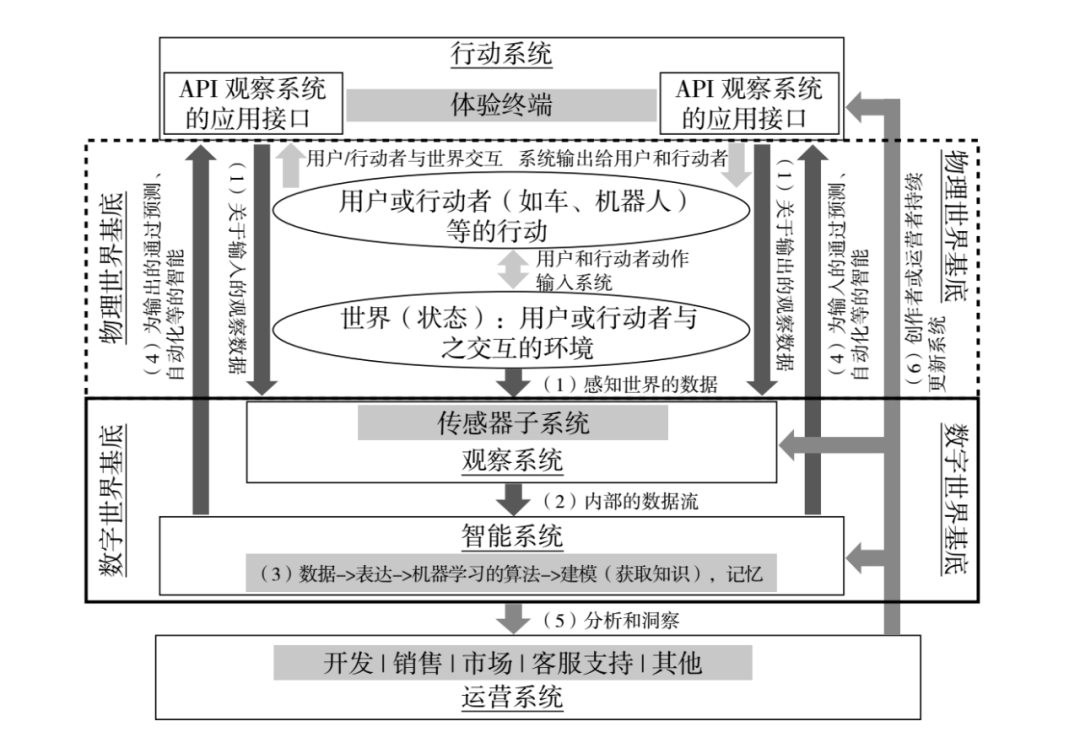 特别要强调的是,“流入”是把原子变成二进制的数字,也就是把物理世界变成数字,“流出”是把数字变成物理世界的看得到、摸得到的原子,建立了一个反馈闭环来产出数字世界里关于该社会现象的知识,进而帮助到物理世界里的人。