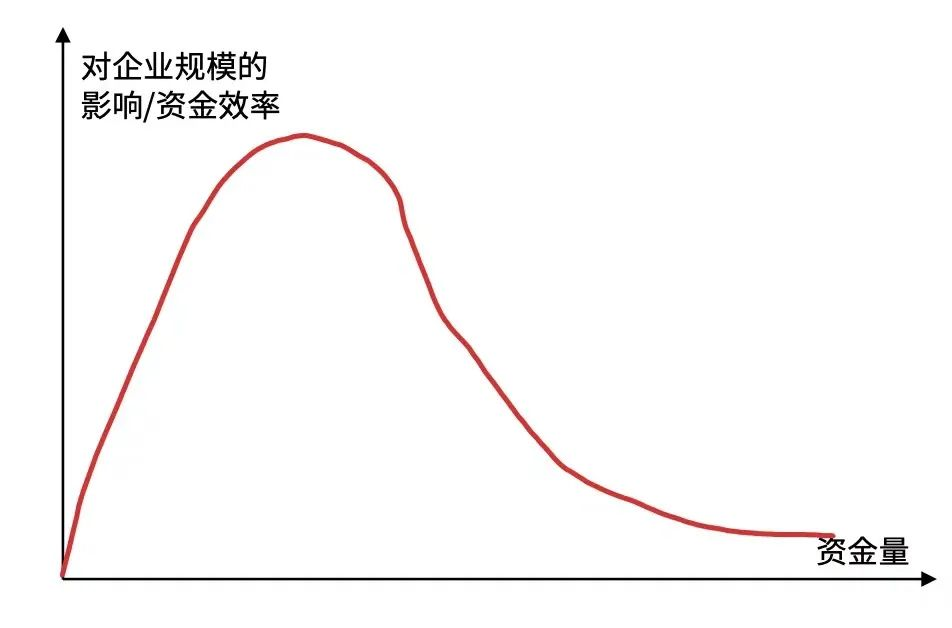 因此技术和制造类投资,相比传统互联网企业而言,是一个相当长周期的行业,这是其行业属性所决定的。技术是一个抽象概念,必然需要有一个承载主体,这个主体可以是产品,可以是设备,也可以是软件和服务,或者以上的综合体,但无论如何不能是抽象的技术,抽象技术本身没有被投资价值。从技术到商业的链条很长,越是新的先进技术越是如此,这其中的每一步转换和过程都存在高度风险。这里提到的风险包括多个层面,既有技术本身的转换风险,也有市场风险和时间风险。首先一项新技术的出现,从最初的实验室技术到小试、中试或者类似的环节,再到确认技术可能可转化为商业上可行的产品载体,这个时间非常漫长,失败率也极高,应该说大部分实验室技术是无法完成产业化过程的。在经历了产业化过程之后,产品是否能达到批量制造一致性要求,是否是客户需要的产品,是否能够快速迭代到客户的期望值,这一过程也是危险重重,时间也很难一概而论,有的企业2~3年就跨过去了,开始形成批量收入,有的企业甚至10年都没有走完这个过程;迈过这一步的企业,才会面临下一步收入成长以及持续创新、保持竞争力的第三阶段,这个阶段也需要较长时间。由此可见,一个技术落地为一家能大规模盈利的公司,时间长度和过程中的风险都是巨大的,这也是为什么早期的投资人大都不愿意去碰这个方向的原因。但需要看到的是,如果把时间周期再放长一些,到15年这样的尺度,也许很多企业就是好的投资标的。而在目前的基金存续机制下,早期技术和高端制造投资的风险都十分巨大。其次,光靠砸钱,在工业和技术领域砸不出头部企业。传统互联网行业的头部马太效应明显,资金的密集度和有效性非常高,容易利用资金优势快速扩张,形成其后的一系列护城河。这很大程度上由to C的行业特性决定,一旦开疆拓土完成,再从已有用户身上寻找赚钱的商业模式。简单说就是先靠钱烧出一个接近垄断地位的行业龙头,然后再从C端客户处获取商业价值。而在技术驱动的制造业,to B的特性先天就快不起来,这是从商业侧而言;从技术产品成熟过程看,也要遵循客观规律,要经过多次和客户之间的反复迭代,才可能稳定成熟。这一切都需要时间,这个自然规律不是靠砸钱就能大幅加速发生改变的。资本的作用在短期内可以保证公司现金流充足,衣食无忧,但在到达一定的资金充裕度之后,资金效率的边际效应大幅下降、接近于0,这是技术和制造业的特点。随着企业商业成熟发展到一定程度,开启高速成长模式之后,对资金的需求又会上升,如下图所示,但这个时候也不在早期投资的范围了。