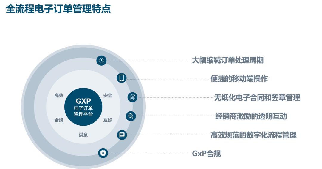 NNIT的eOrder电子订单管理平台则打破传统渠道商务合作方式,具备六大功能模块,能大幅缩短订单处理周期,支持便捷的移动端操作,无纸化电子合同和签章管理,经销商激励的透明互动,高效规范的数字化流程管理,且满足 GxP 合规。