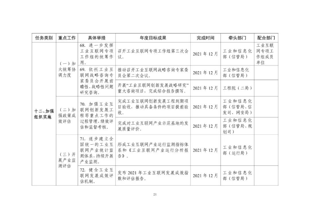 关于印发《工业互联网专项工作组2021年工作计划》的通知