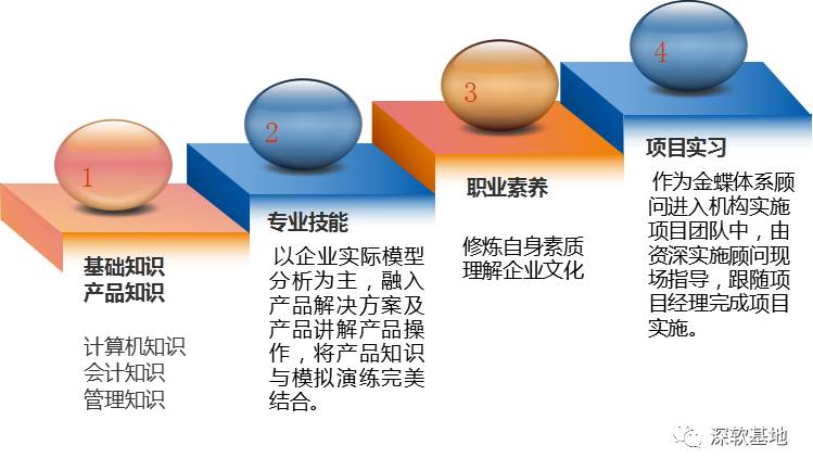 师资实力:知识渊博、经验丰富的讲师阵容(金蝶体系资深项目经理、专业认证、8年以上项目经验)+ 全方位、多维度课程体系设置(产品、工具、行为规范、项目实习)+“金蝶式多技能、复合型专业人才培养体系”。