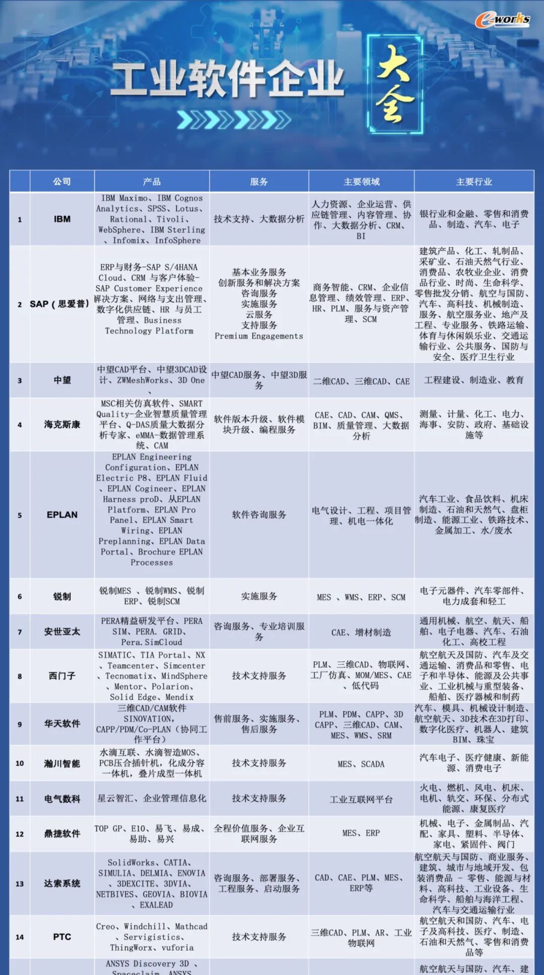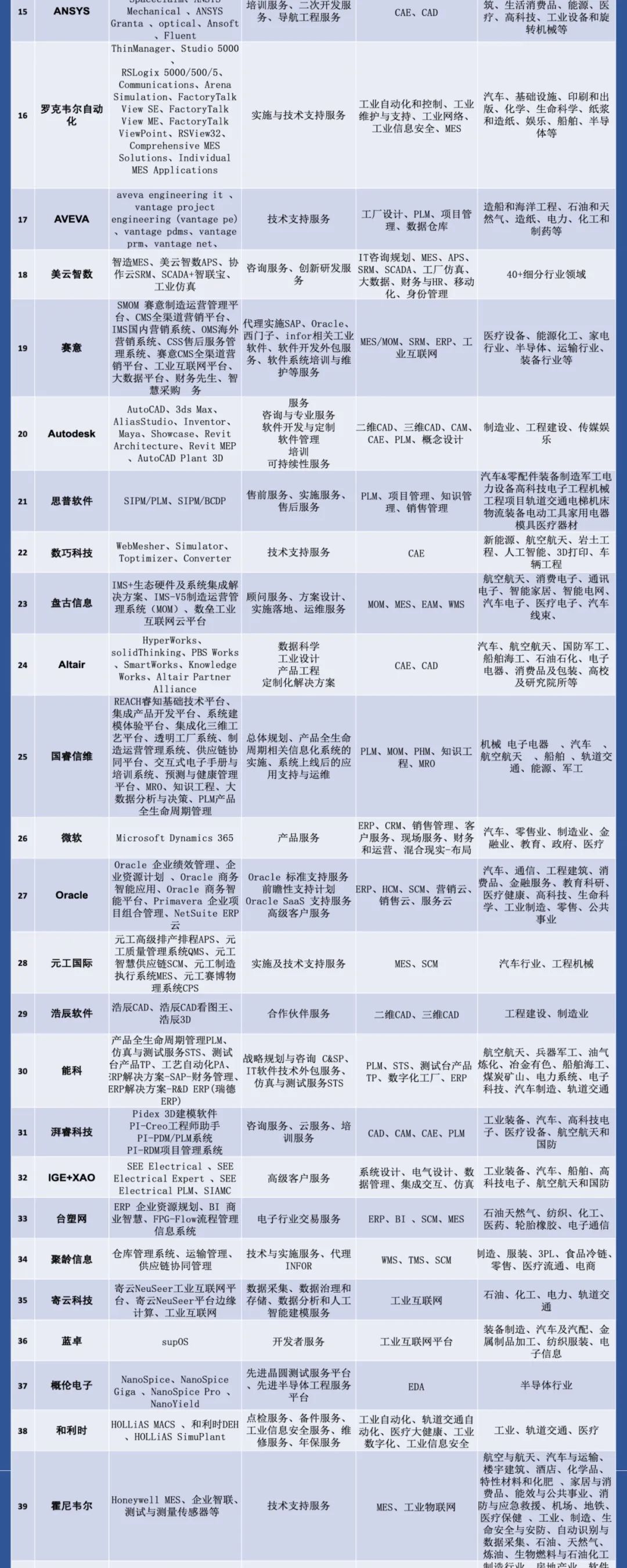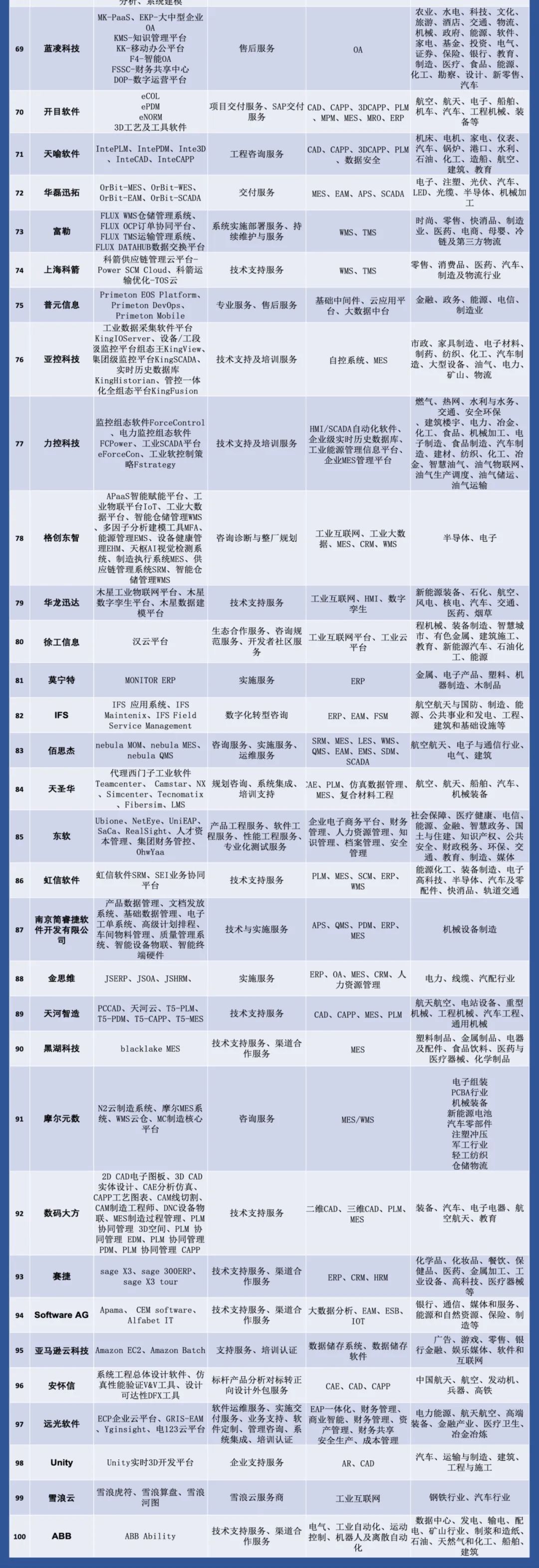 我们悉心整理的400余家工业软件厂商名录将分四期在【数字化企业】微信首发今天是第一期100家欢迎大家密切关注本账号的更新列表图片可点击放大看每个字都清晰可见↓