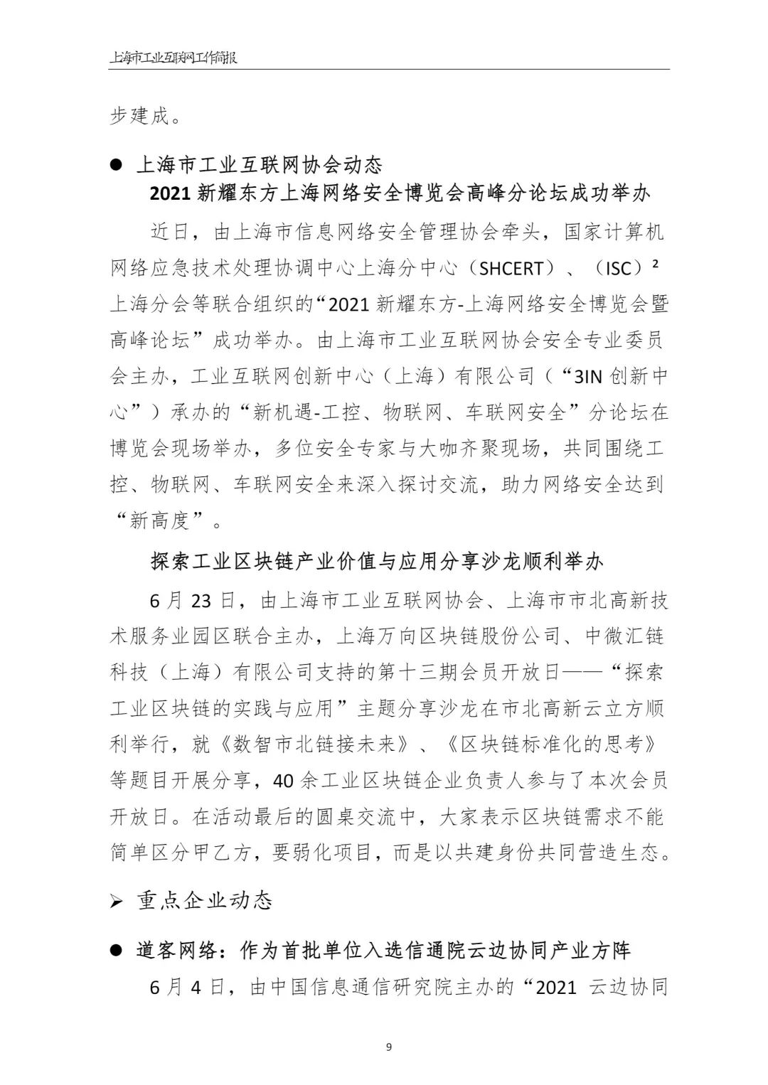 由上海市经济和信息化委员会指导,上海市工业互联网协会、工业互联网互联网产业联盟上海分联盟、工业互联网创新中心(上海)有限公司、上海质量管理科学研究院、中国信息通信研究院华东分院等单位联合编发的上海市工业互联网工作简报(2021年第7期 总第29期)已发布,发布内容如下。