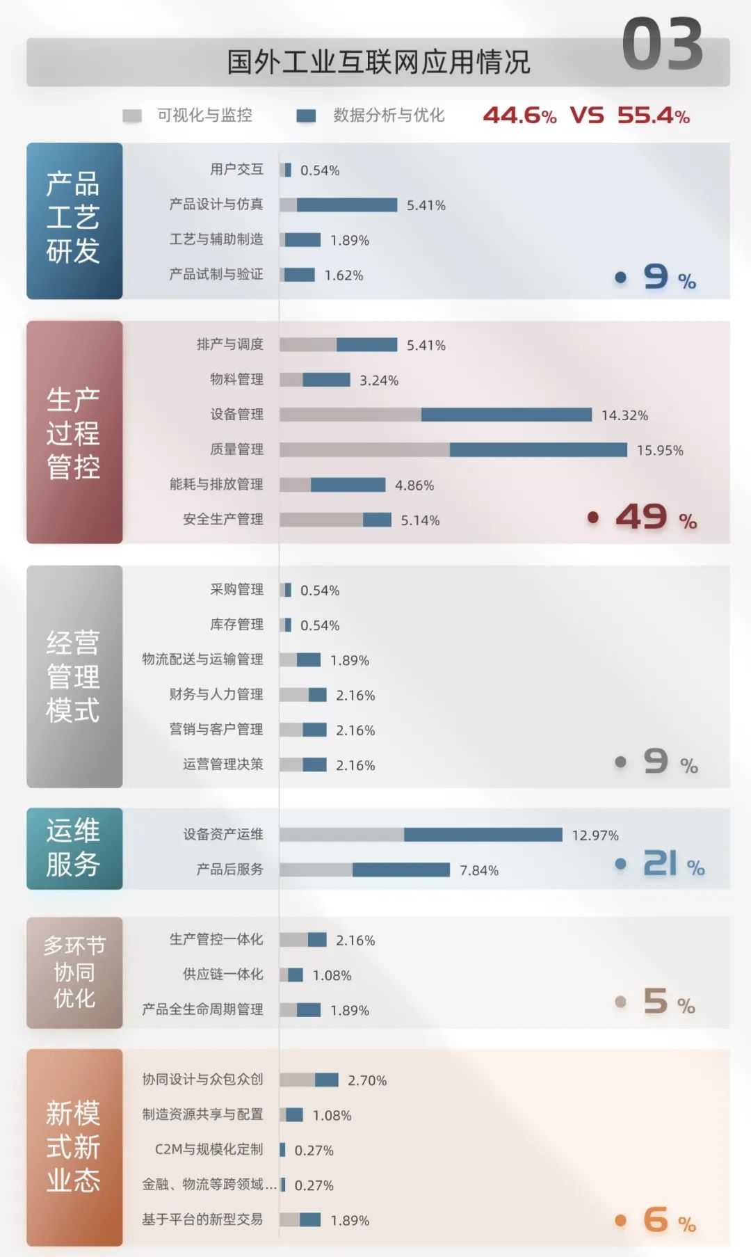 总体来看,工业互联网应用以业务经营优化与资产管理服务为核心,向多维度渗透发展:
