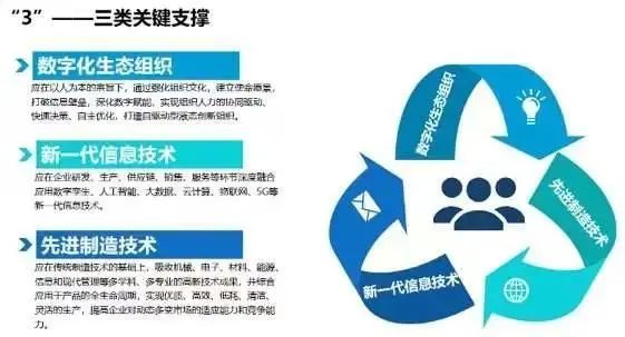 “3”为数字化生态组织、新一代信息技术、先进制造技术三类关键支撑。
