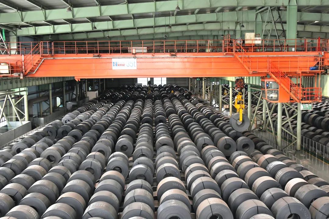 作为省级示范智能车间,目前该产线所有机组均实现了入口上卷、出口打捆的自动化,为优化岗位配置、降本提质增效、提高劳动生产率和保障安全生产创造了条件,通过各个系统之间的信息传递,实现了生产工艺全程数字化控制和“一键下单”组织生产。智慧场景在省级示范智能车间——冷轧厂酸轧车间同步上演。1.4万平米的原料库区空无一人,整片作业区域几无照明,五台无人行车在空中自如行走吊卸钢卷,无人库系统的成功运行实现了整个酸轧原料库所有设备的全自动运行控制。该项目运行一年以来,设备故障减少了60%以上,原先灯火通明的库区也具备了全天候黑灯条件。以点带面,示范带动,目前热卷板二车间、宽厚板一车间等也都在加速推进“黑灯工厂”建设。