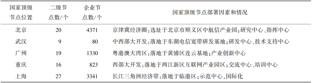 目前,我国第一批国家顶级节点的建设是按照东(上海)、南(广州)、西(重庆)、北(北京)、中(武汉)的方案来进行。但是,根据业务需求、二级或企业节点、网络能力等分析指标预测,未来我国国家顶级节点的部署规划大概率偏向东南部而弱化西北部,这与工业互联网的发展初衷相悖。因此,我国需要全国一盘棋考虑,带动发展滞后地区,提升国家顶级节点对这类地域的服务能力,故在未来规划中需要考虑在西北部地区建设一些关键节点。