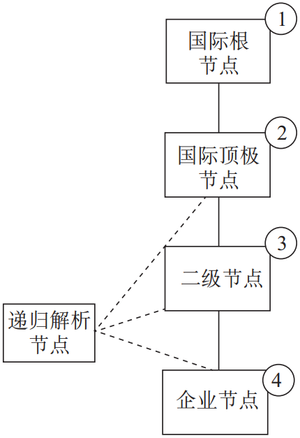 如图2所示,国家顶级节点直接为二级及其他企业节点提供顶层的解析服务。目前,我国二级节点70多个,企业节点6000 多个,标识注册量超过70 亿[4]。据不完全统计,我国大部分二级节点和企业节点还是以工业发展指数较高的省市为主要部署地,二级节点和企业节点保持高速增长,相对现有5 个国家顶级节点,后续顶级节点数量将被下一级业务推动扩张。